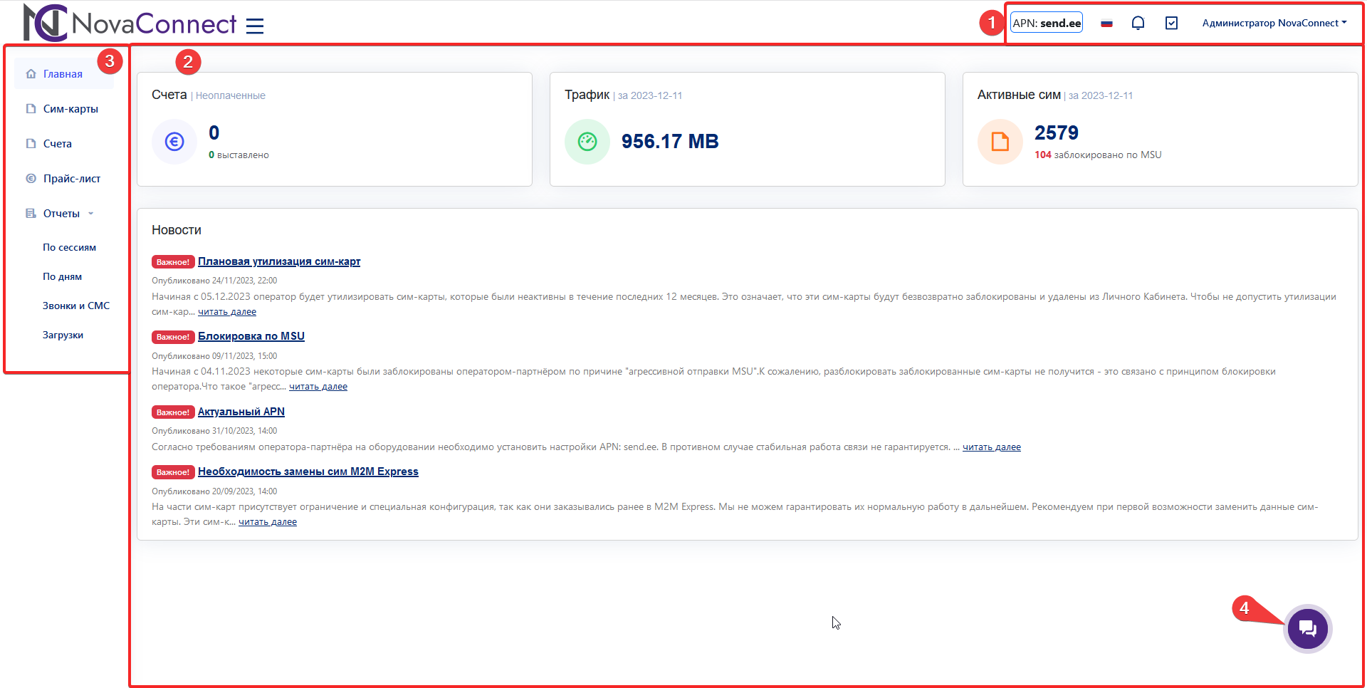 - Верхняя часть, содержащая в сете виджеты уведомлений и заданий, информации о текущем пользователе и информацию об APN для сим-карт;