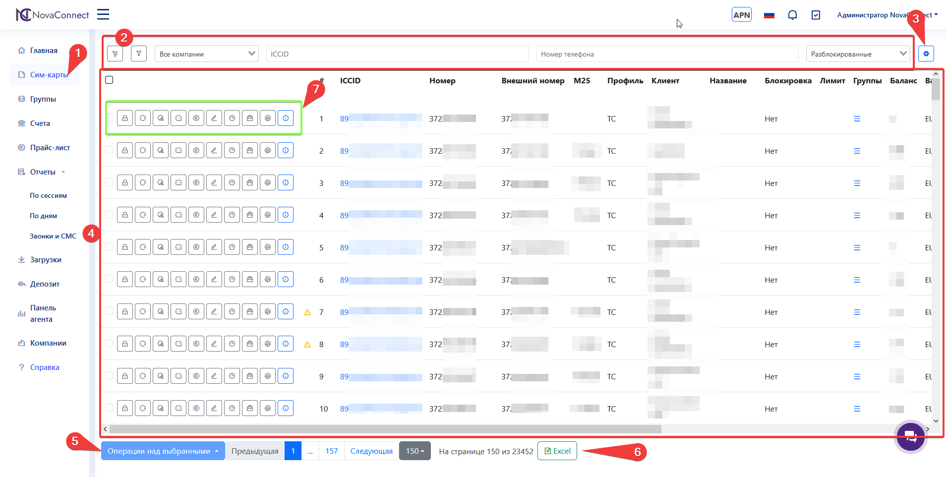 Более подробно про эти действия можно почитать в разделе Управление сим-картами